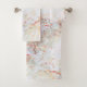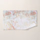 On this stylish towel set is a rose gold marble design on a light pastel back round. Elegant classy chic vibes.