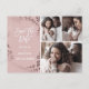 This elegant rose gold pink 3 photo save the date postcard is perfect for a classy wedding. The design features a stunning faux rose gold foil leafy frame on a blush pink background and is paired with a dazzling cursive font. Personalise the front of the announcement with the couples names and wedding date. Customise the back with your wedding details.