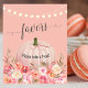 Enjoy this elegant, autumn, floral baby shower for a baby girl. Pinks, corals, and yellow florals with a blush pink background. "Favours" above pumpkin and "Please take a Treat!" on pumpkin. String lights at top and pink ribbon wrapped around pumpkin stem.