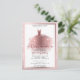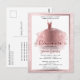 This elegant Quinceañera postcard invitation features a beautiful rose gold dress with diamond accents and customisable text on a soft pink marble background. Perfect for inviting guest to your special 15th birthday celebration.