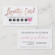 Elegant rose gold script makeup hair pink heart loyalty card with modern hand lettering style brush typography on white , a simple, professional and minimalist card.