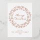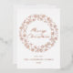 Elegant holiday card with "Merry Christmas" displayed in a rose gold foil calligraphy script encircled by a wreath of rose gold foil snowflakes and pine branches on a white background. Personalise the front of the non-photo holiday card by adding your name and the year. The back of the modern holiday card features your custom message with a beautiful snowflake pattern.