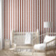 This elegant rose gold and white striped wallpaper adds distiction to any room. Perfect for an accent wall.