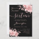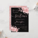 Elegant Rose Gold Sweet 16 Glitter Floral Black Invitation