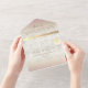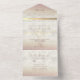 Elegant, modern, simple marble and glitter rose gold all-in-one wedding invitation with gold rope heart and custom picture of the couple at the back.