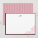 Elegant Rose Lace Pink Stripe Script Monogram Note Card