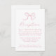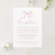 Share your wedding celebration plans with soft romance using this rose pink bow wedding reception card. A charming hand-drawn bow in a warm rose hue sits above “Reception” written in flowing calligraphy, setting the tone for a stylish and coordinated wedding suite. Customise with your reception location, timing, and wedding website. Ideal for garden, vintage, or modern romantic weddings.