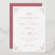 This elegant wedding invitation features a clean, minimalist design with ample white space and a soft colour palette of rose pink and gold. The layout is vertically orientated, showcasing delicate script typography for an understated yet sophisticated look. Ornamental corner designs add a touch of classic elegance, while the bold serif font highlights key details. Perfect for couples seeking a refined and luxurious aesthetic, this invitation sets the tone for a memorable celebration.