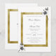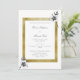 Two Christmas roses, hand-drawn in classic graphite pencil, decorate this rustic modern, sophisticated, elegant and chic winter or Christmas wedding invitation template that is a modern take on a traditional floral wedding frame. The texture of the black pencil shows through on the white paper, giving it a sense of effortless elegance. The gold layered frame (not real foil!) is also an updated version of a classic, giving the design structure but keeping a sense of modern freshness. It features modern script calligraphy for the names of the bride and groom.