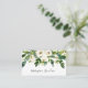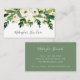 Elegant horizontal business card with a top border consisting of watercolor painted white roses and greenery and your business name is an elegant handwritten font on the front. The backside has your contact info in white over a green background. The background may be changed to any colour that you wish. These are great for a skin care business, florist or makeup artist.