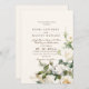 Modern Minimalist Wedding Invitation white roses with gold dust are elegant and classic invite. Design features an handwritten font and modern minimalist design. To change details, click "Personalise".