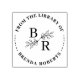 Elegant Round Botanical Initials Library Bookplate Rubber Stamp.