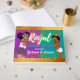 African American Princess with adorable Afro puff ponytails wearing diamond tiara alongside an Adorable African Prince with gold crown, white diaper and blue slippers. Purple and Teal colour block background with a touch of Gold confetti and Gold foil border. ©2022 Miss Sassy Party Designs