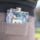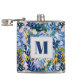 Elegant Royal Blue Abstract Botanical Monogrammed Hip Flask