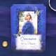 This elegant blue butterfly Quinceanera invitation with decorative, antique photo frame is versatile for dark blue, navy blue, or royal blue party themes. Butterflies can be moved and resized. Beautiful script writing is attractive with your azure or cerulean gown portrait. Popular blue and gold Quinceanera invite is ideal for digital cards, digital file for sharing text invitations.