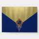 Elegant royal blue and gold invitation and announcement special occasion envelope with pretty printed gold foil flap and gold foil interior with beautiful royal blue and gold pearl jewel in the centre. You can customise this beautiful royal blue and gold envelope by adding your return address, logo, etc., to the back flap. This is a printed design with no real jewels, foil, glitter, etc.