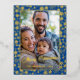 Elegant Royal Blue Gold Snowflakes Custom Photo Foil Holiday Postcard