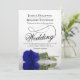 This beautiful wedding invitation features a gorgeous photograph of a single long stemmed royal blue or cobalt coloured rose lying on its side reflecting in a pool of water with waves and ripples. The design features a fancy calligraphy script with a long curly tail making it both modern and classic. Elegant, sophisticated and chic way to invite your friends and family to share in your special day. The back of the card has a QR code for your wedding website and a brief note instructing people to visit the site for details and RSVP.