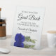 This beautiful pedestal sign will invite your wedding guests to sign your guest book. Features an elegant design with a single long-stemmed vivid royal blue or cobalt coloured rose lying on its side mirrored in a pool of water. There is space for the names of the couple as well as the wedding date.