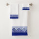 Elegant royal blue and white Bath Towel Set. Vintage Greek pattern on blue and white.