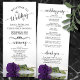 This beautiful wedding program features an elegant design with a single long stemmed deep royal purple coloured rose lying on its side reflecting in water. The titles are written in fancy script calligraphy, and there is space for your ceremony and wedding party details, as well as a short thank you for your guests. Wonderful way to welcome your friends and family to your wedding celebration.