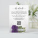 Elegant Royal Purple Rose Wedding Details QR Code Enclosure Card