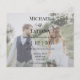 This is a description of a wedding invitation that features an elegant RSVP QR code and two photos.