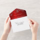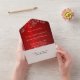 Your guests will love this all in one wedding invitation. An elegant ruby red with grey swirls. This includes your RSVP, that the guest can remove and mail back to you. Simply add your names and wedding details. Further customise, with the menu options on the RSVP portion. On the reverse you will add your name and address twice. One will go on the outside flap, and the other on the RSVP card.