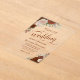 These beautiful acrylic invitations feature a stunning design with hand painted watercolor roses in shades of rust orange, burnt umber, and peach, along with sprigs of eucalyptus leaves, lavender flowers, and garden greenery. The typography features elegant script lettering with delicate swirls and swashes on the ends of the letters. Available in both clear and frosted acrylic, these stunning invites will make a lasting impression and are a wonderful way to invite your friends and family to share in your joy on your special day.