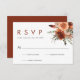 This modern elegant wedding RSVP card features a watercolor floral arrangement in shades of rust and terracotta on the front with some simple typography. The reverse side is coordinated in terracotta rust.