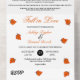 This elegant fall wedding invitation is perfect for a modern autumn wedding. The simple design features fall maple leaves with elegant black and orange typography on a white background.
