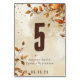 Earthy colours of a autumn leaves in rusty orange. Large table number in this rustic design. Perfect for a fall wedding. Same design on both sides.