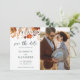 This romantic and elegant fall floral wedding Save The Date photo card presents a chic botanical design of autumnal flowers and greenery in warm tones and is easily customisable with one of your favourite engagement pictures.