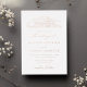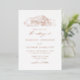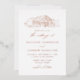 Rustic wedding invitations with a sketched rose gold foil illustration of a barn displayed at the top of the invite on a white background. The barn wedding invitations feature elegant rose gold foil calligraphy elements throughout the design. Personalise the rose gold foil barn wedding invites with your names and wedding details.