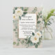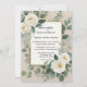 Announce your special day with this elegant rustic boho wedding invitation, featuring delicate watercolor white roses, eucalyptus greenery, and a beige linen background. Perfect for romantic rustic chic weddings.