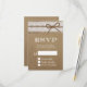 Elegant Rustic Burlap String Bow Wedding RSVP Card.