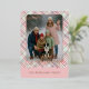 This holiday card stands out with its elegant and unique design. It features a timeless "Happy Holidays" greeting printed in real rose gold foil, customisable to your preference, on a light green, pink, and dark red plaid pattern design. The front offers space for your family name, photo, and a custom seasonal greeting, while the back is ideal for adding a personalised seasonal message or poem. It's a stylish way to send your holiday wishes.