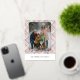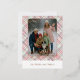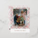 This holiday card stands out with its elegant and unique design. It features a timeless "Happy Holidays" greeting printed in real rose gold foil, customisable to your preference, on a light green, pink, and dark red plaid pattern design. The front offers space for your family name, photo, and a custom seasonal greeting, while the back is ideal for adding a personalised seasonal message or poem. It's a stylish way to send your holiday wishes.