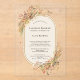 This Elegant Rustic Fall Beige Lingerie Shower Acrylic Invitations design features a timeless neutral base palette of beige and gold on clear acrylic backgrounds with delicately muted colourful embellishments of golden branches and lovely autumn florals with softly falling leaves in red, copper, dusty rose, burnt orange, terracotta, and the full fall colour flourish. These botanical elements are paired with simple traditional minimal black typography to create a presentation that is polished with a delightful touch of whimsy. This design suite offers a range of formal to casual, minimalist to maximalist, in beautiful mix-and-match options for easily curating your perfect wedding suite or event decor in the stunning regalia of fall. As with all of our designs, if you have any questions or special requests, please reach out to us; we would love to help bring your vision to life.