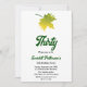 This elegant fall birthday invitation is perfect for a modern autumn birthday. The simple design features green fall leaves with elegant black and green typography on a white background.