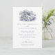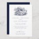 Impress your guests with this elegant formal wedding invitation by JessicaAmber. This classic card features a detailed vintage illustration of a rustic farmhouse, which you can replace with an image of the destination you will be married at (image should have a transparent or white background). Elegant dark blue lettering displays the bride and groom names, and details of the wedding, including the location, date and time. This invitation is preferred for when the couple are hosting the event themselves.