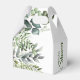 This delicate green calligraphy bridal shower favour box is perfect for a rustic wedding. The romantic minimalist design features lovely and elegant green typography on a forest leaves background with a clean and simple look. Personalise the favour box with your name, event and date.