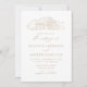 Rustic wedding invitations with a gold sketched illustration of a barn displayed at the top of the invite on a white background. The photo barn wedding invitations feature elegant gold calligraphy elements throughout the design. Personalise the gold wedding invites with your names and wedding details. The invitation reverses to display your full-bleed vertical engagement photo.