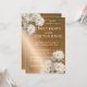 Elegant Gold Brown Wedding invitation card featuring a warm gold-brown background with delicate white flowers.this classic floral wedding invite combines simplicity and romantic celebrations .includes bride and groom names ,wedding date,and venue detailes in a clear ,stylish layout.
