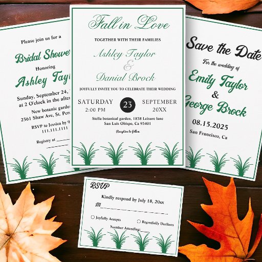 Elegant Rustic Green Grass Orange Fall Wedding Invitation