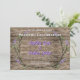 An elegant and lovely design featuring eucalyptus and lavender painted in romantic watercolor, with a rustic barn wood twist. Wedding invitations.