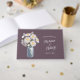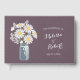 The simplicity of a bouquet of white daisies in a mason jar, aided by the white script font, creates an elegant yet minimalistic wedding design. Kraft paper adds a charming rustic backdrop. The text is fully editable.