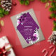 These elegant wedding invitations blend rustic charm with modern geometric design. Printed on clear acrylic, they feature a striking purple diamond shape adorned with blush and purple floral arrangements. The transparent background adds a sophisticated touch, making the text and floral elements appear to float. This unique combination of styles creates a memorable and stylish invitation.