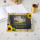 This gorgeous 'In Loving Memory' Guest book features a framed photograph of your loved one, a rustic wooden background, with a vintage chalkboard decorated with big yellow sunflowers and purple lavender. It is the perfect keepsake for family and friends to write tributes and share memories of your loved one. All text can be personalised by font, content and colour. Available in matching memorial service invitation and sympathy thank you note card.