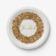 Elegant Rustic Thanksgiving Wreath Autumn Leaves Paper Party Plates featuring stylish gold foil style typography and a hand painted watercolor wreath in shades of pumpkin, maple, and merlot on a creamy almond background.